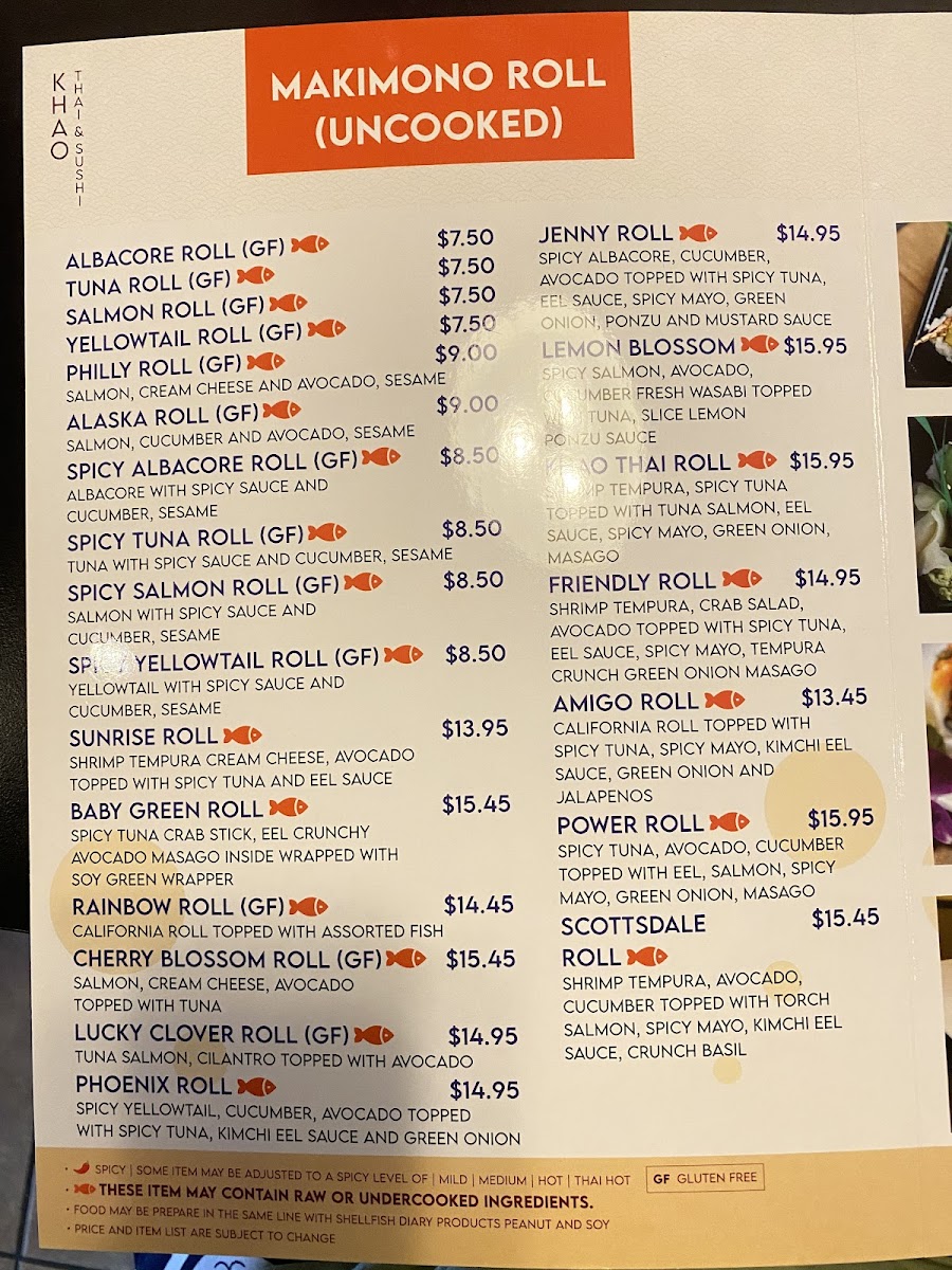 Avocado, tuna, seaweed salad, crunch, masago, scallion, spicy mayo and eel sauce. Spicy.