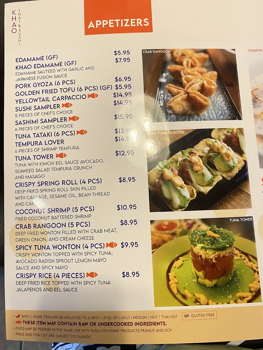 Salmon, cream cheese, avocado topped with tuna. Gluten free.