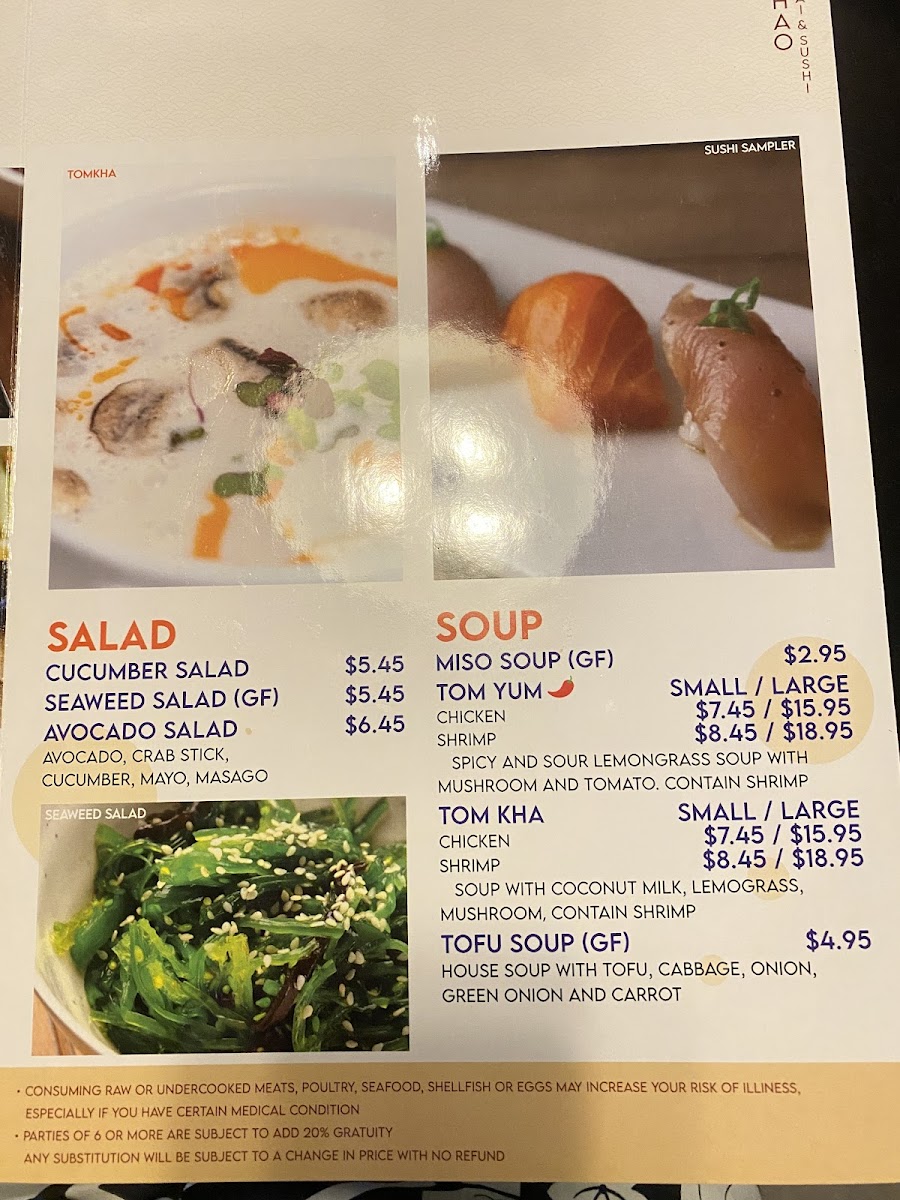 House soup with tofu, cabbage, onion, green onion and carrot. Make it gluten free upon request.