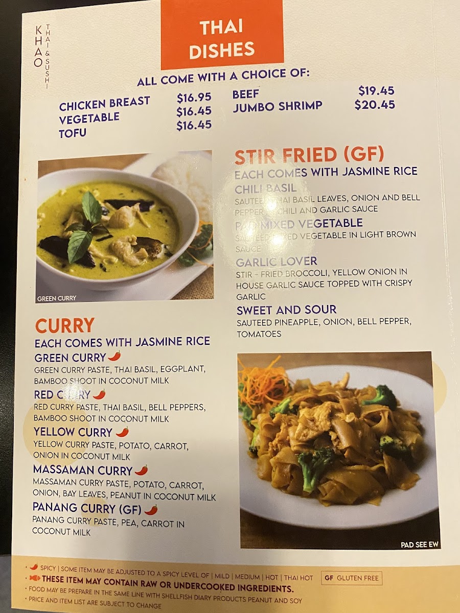 Northern Thai egg noodles and chicken (or beef/shrimp) in curry soup topped with crispy noodles, red onion, cilantro and pickled mustard greens. Spicy.