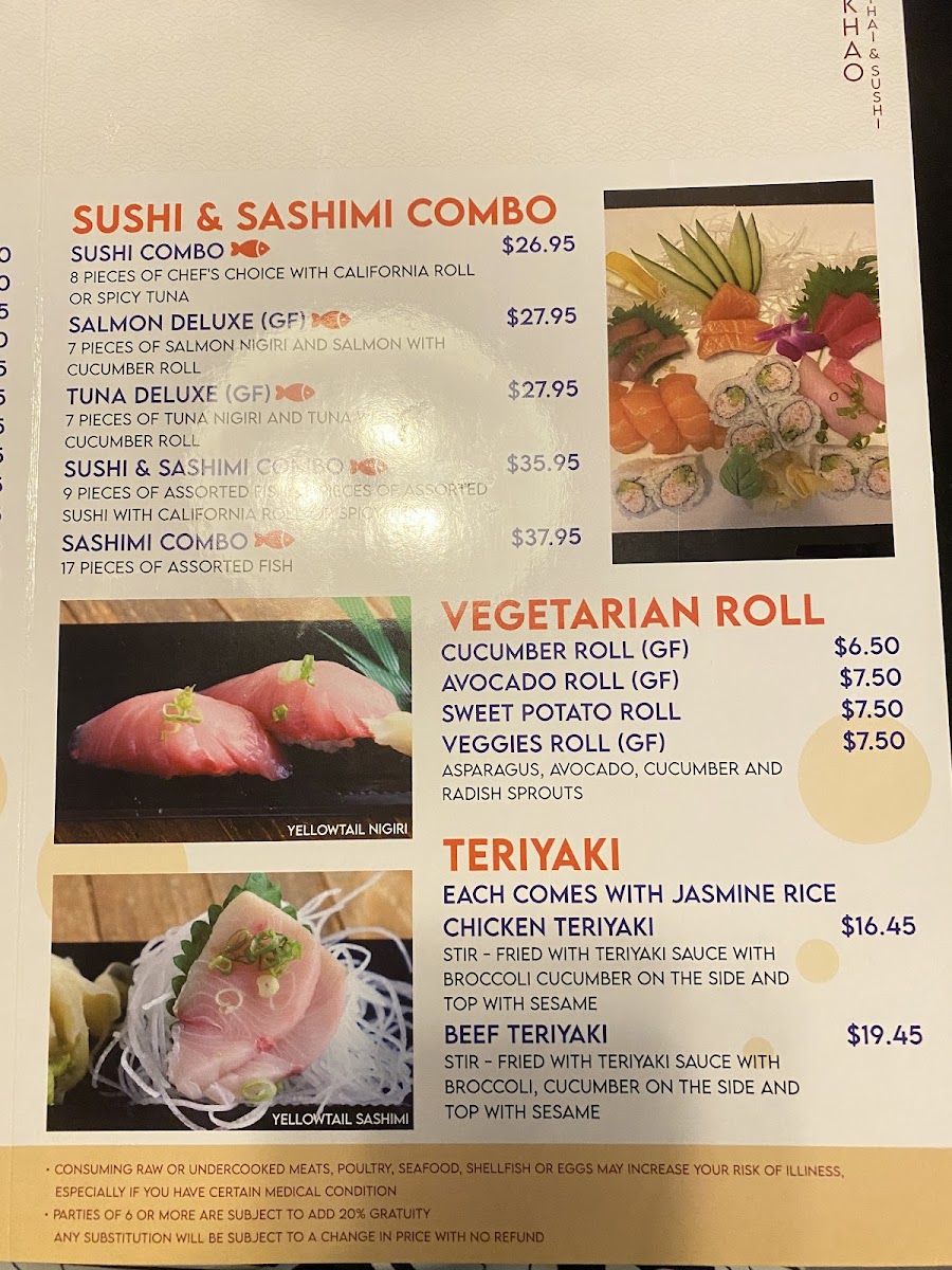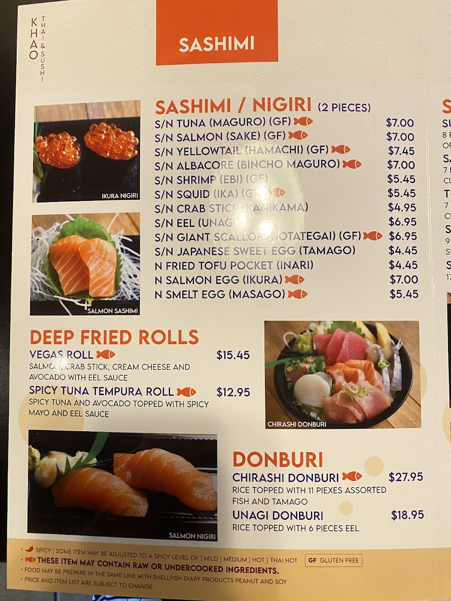 5 pieces of assorted fish with California roll or spicy crab roll.